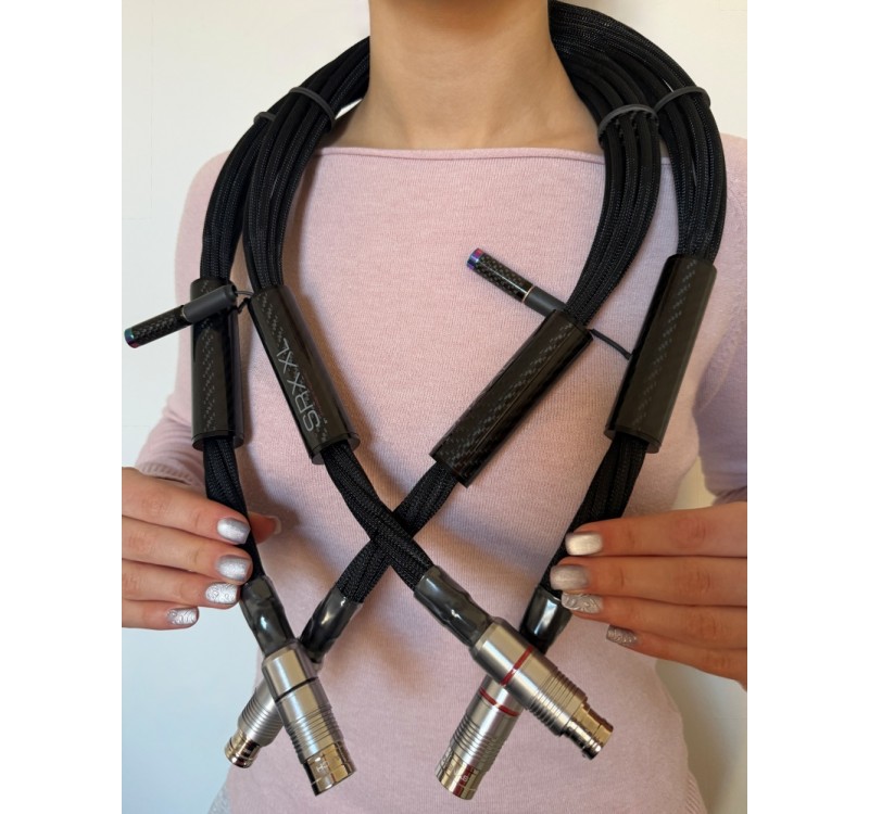 SRX propojující kabel využívá různorodou vzdálenost vodičů. Skládá se z 12 x Silver Air Strings na RCA a 18 x Silver Air Strings na XLR. Každý Air string je ručně vyráběný v naší Kalifornské továrně. Je složen z 99,999% čistého stříbra, vše je ve vzduchovém dielektriku s mřížkou UEF po celé délce kabelu, která snižuje úroveň šumu a rozšiřuje zvukové pole. Uvnitř každého kabelu je pevné "ground plane silver matrix" jádro o průměru 14, které se přímo připojuje k uzemnění střídavého proudu, pomocí dodávané zemnicí zásuvky. K zajištění ještě nižší hladiny šumu stačí připojit uzemňovací plošinu SRX digital k SR uzemňovacímu bloku. Aby se zachovalo oddělení mezi vodiči, zejména kvůli přeslechům, všechny vodiče (s různou vzdáleností) i zemnicí plošina, jsou vedeny přes disky z uhlíkových vláken.